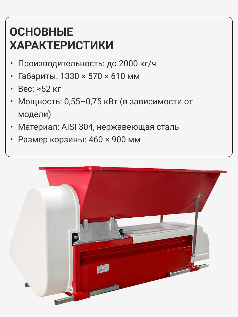 • Регулировка по мягкости дробления, что позволяет учитывать нюансы. получения мезги из винограда разных сортов и размеров.