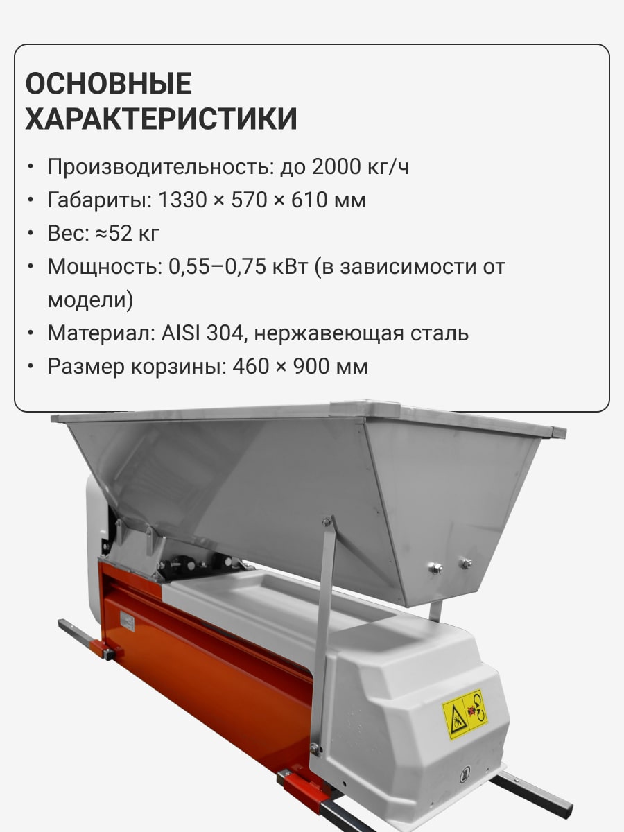Данная дробилка позволяет экономить время и силы. Гребнеотделитель является неотъемлемым помощником для любого винодела. Измельчитель комплектуется дополнительным наборным пластиковым бункером для увеличения вместимости бункера.